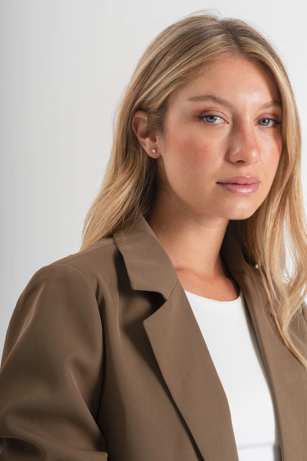 Blazer sastrero color visón completamente forrado en su interior. Posee bolsillo ojal en la parte delantera superior, dos bolsillos con solapa en la parte delantera inferior y botones en las mangas. Su tela sastrera es de calidad premium.