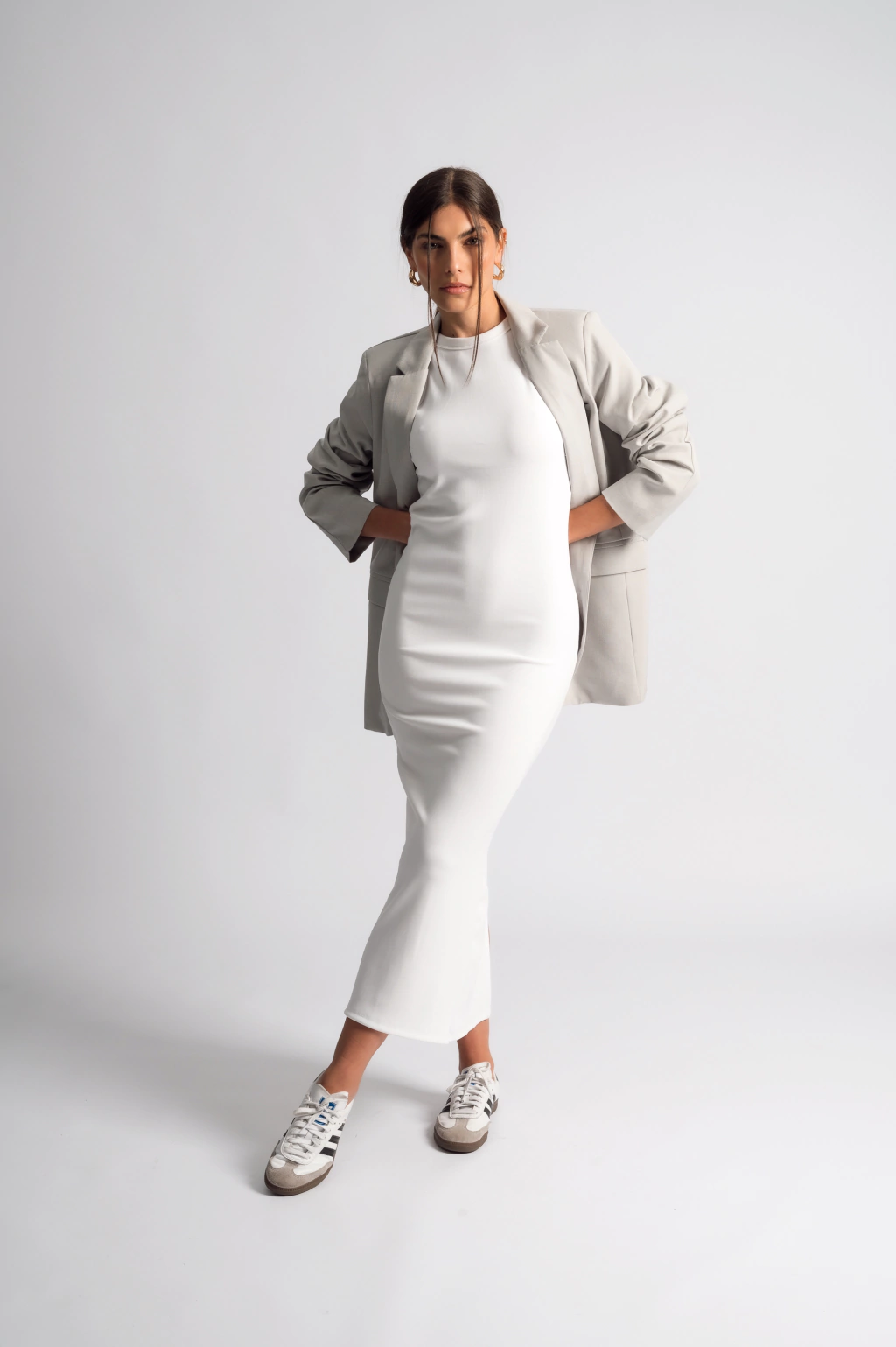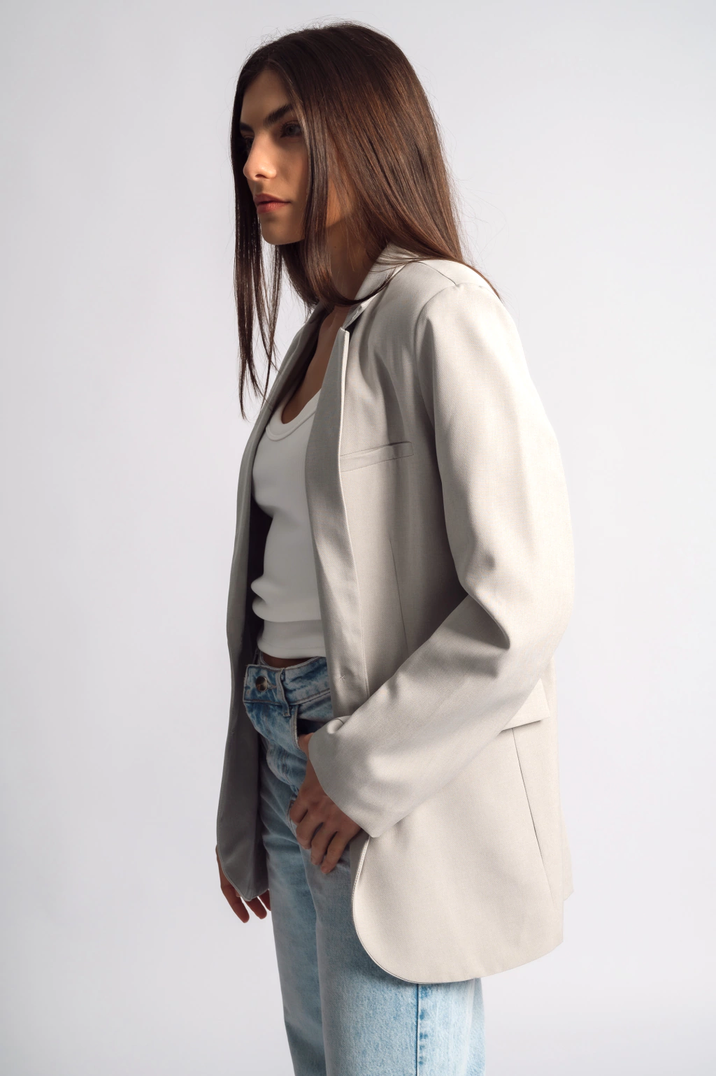 Blazer confeccionado en tela sastrera. Posee hombreras, dos botones centrales, dos bolsillos reales con solapa y un bolsillo ojal en la parte delantera. Tiene un excelente calce y esta completamente forrado en su interior.