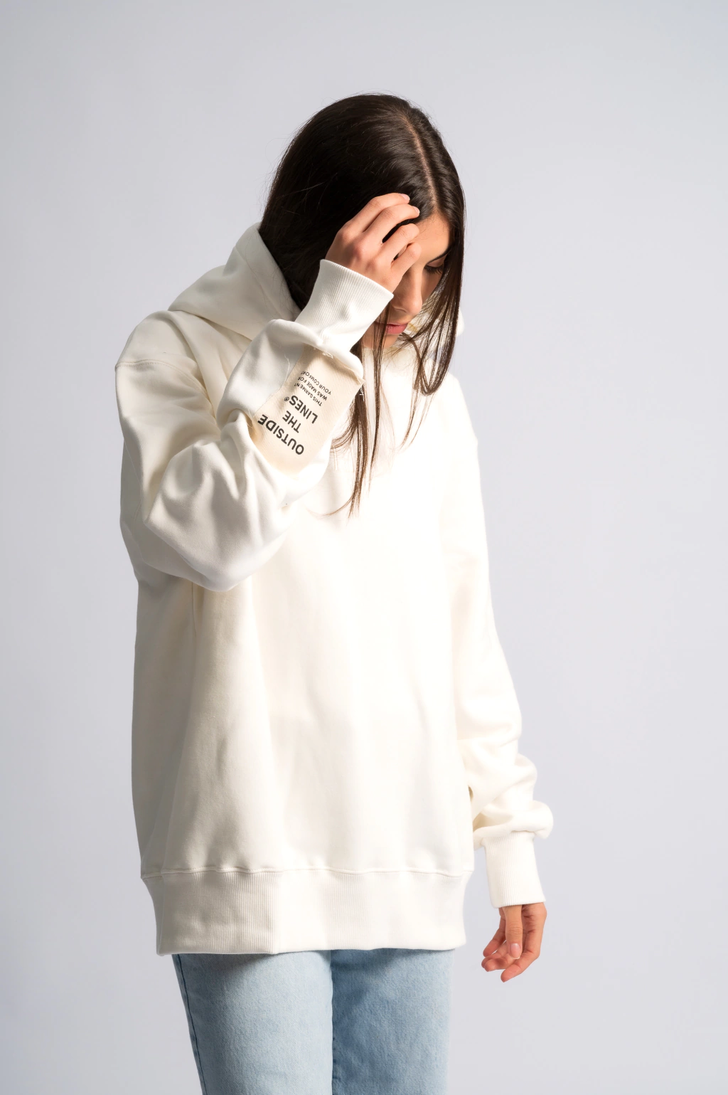 Buzo oversized confeccionado en tela frisa invisible premium. Posee un parche deflecado en manga derecha y un bordado del logo de la marca a tono en el centro. La calidad es premium, cada detalle y terminación de la prenda como su tela es excelente.