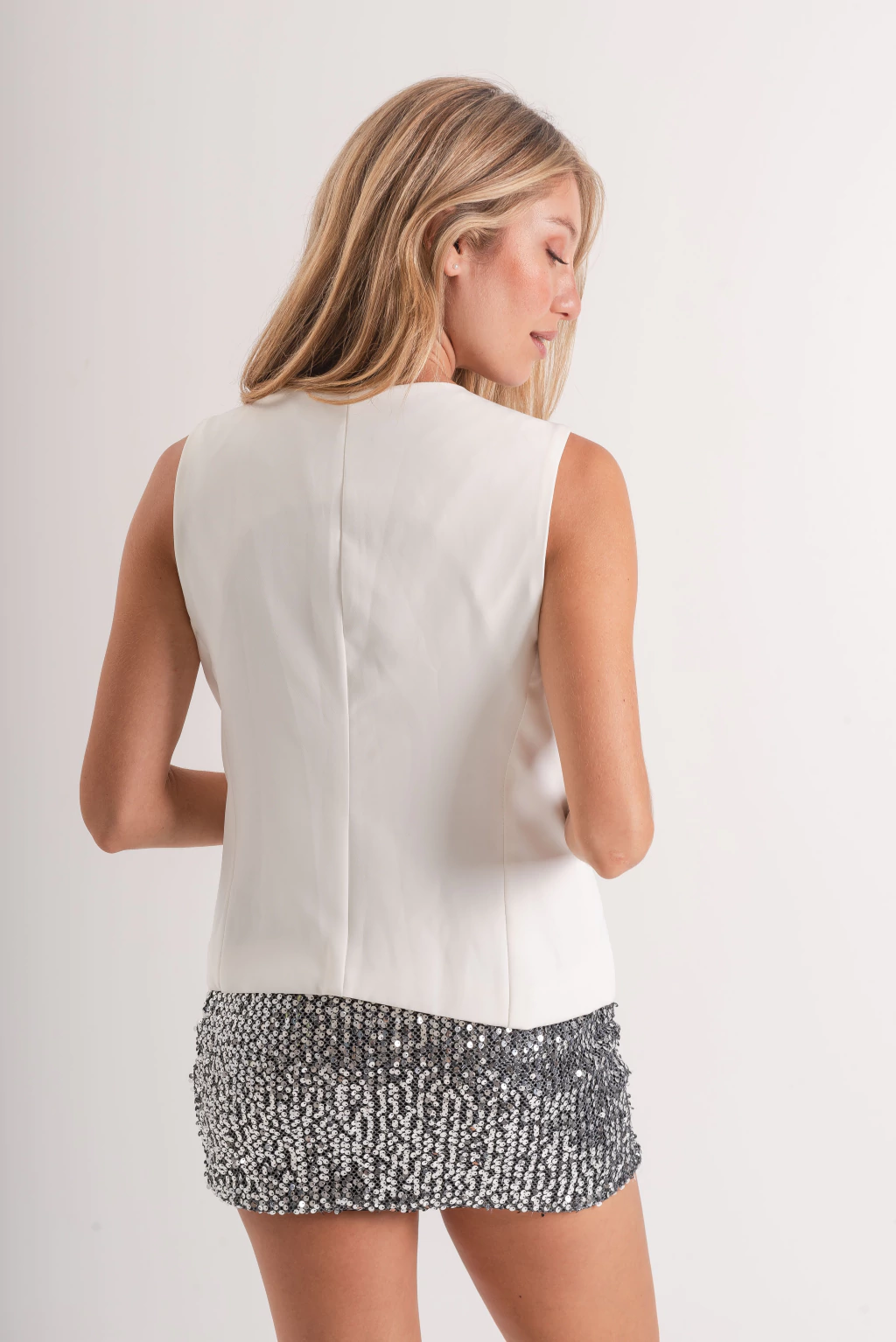 Chaleco sastrero premium asimétrico. Posee dos bolsillos ojal y cuatro botones de acceso en la parte delantera.