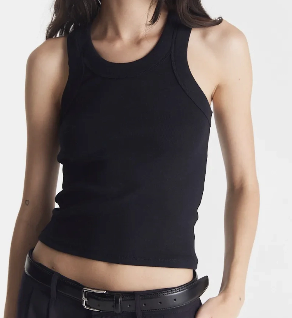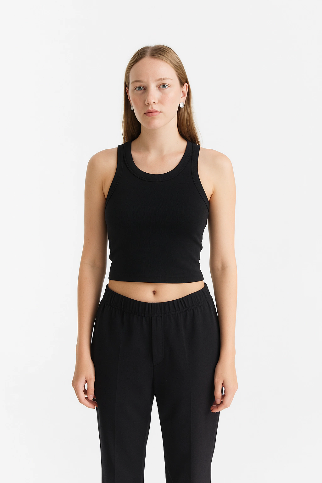 Musculosa de cuello redondo, confeccionada en ribb de algodón premium.