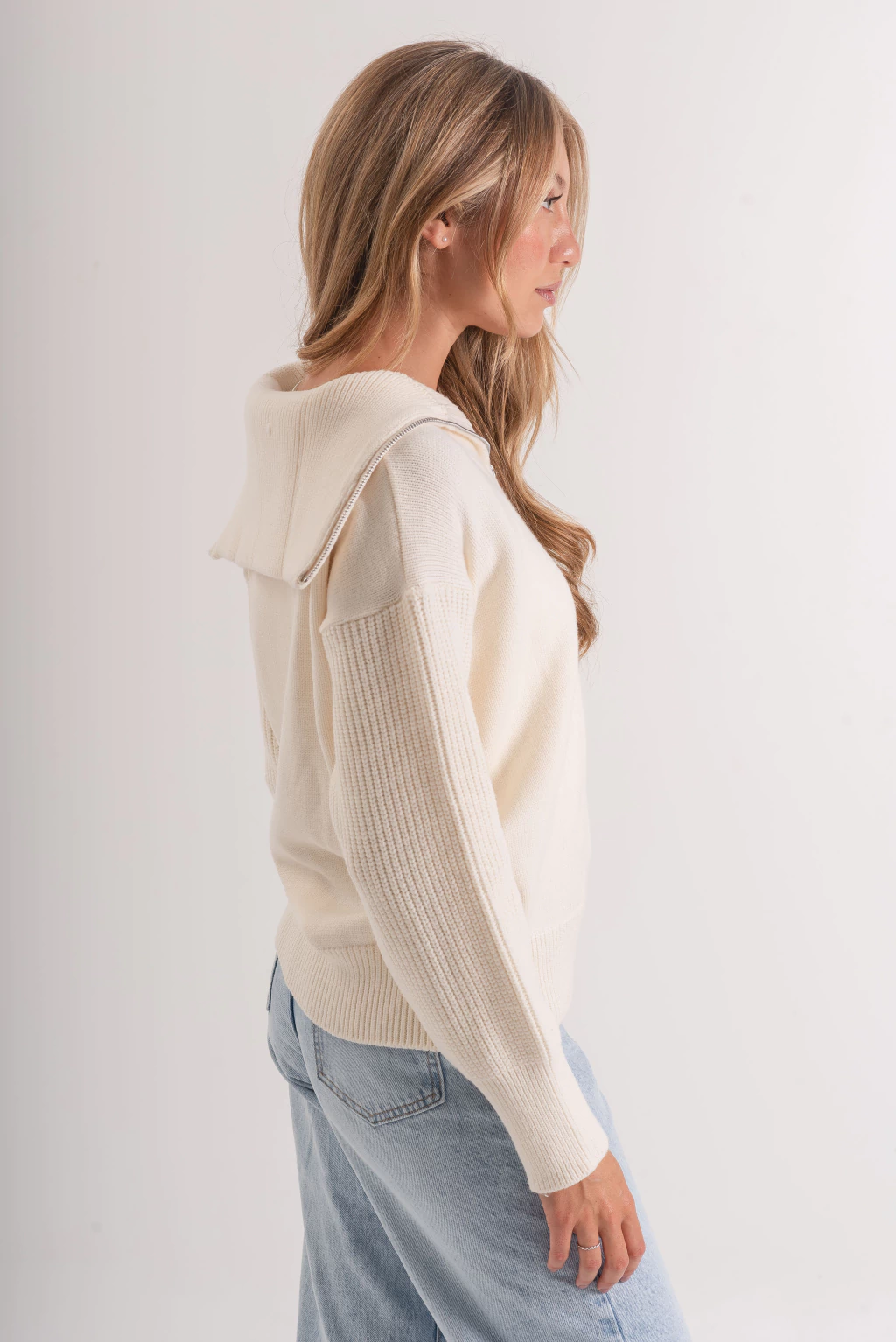 Sweater crudo con cierre en el centro. Posee cuello pronunciado. Su tejido es de calidad premium, suave y muy abrigado. Es un básico con diseño que eleva cualquier outfit.